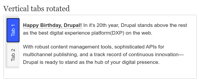 Extra Paragraph Types: Tabs module create a new paragraph type for tabs. Tab content can be paragraphs, pages, Views and formatted text. Tabs are based on jQuery UI Tabs plugin and have various settings for the jquery plugin.